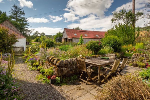 Dalreoch Farmhouse has a delightful garden which wraps around the house with pretty flowering borders, a productive vegetable patch, a wildlife pond and mature trees providing privacy and structure.