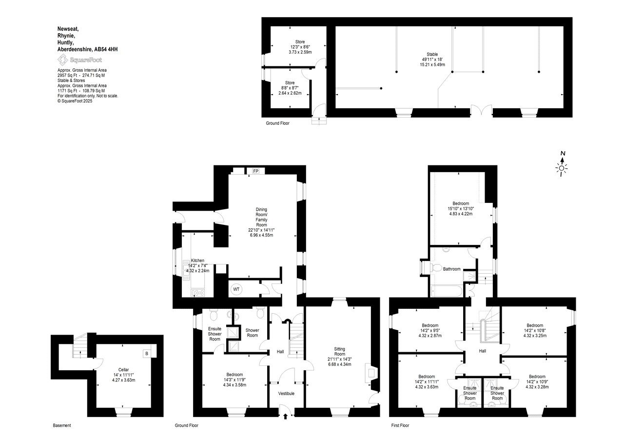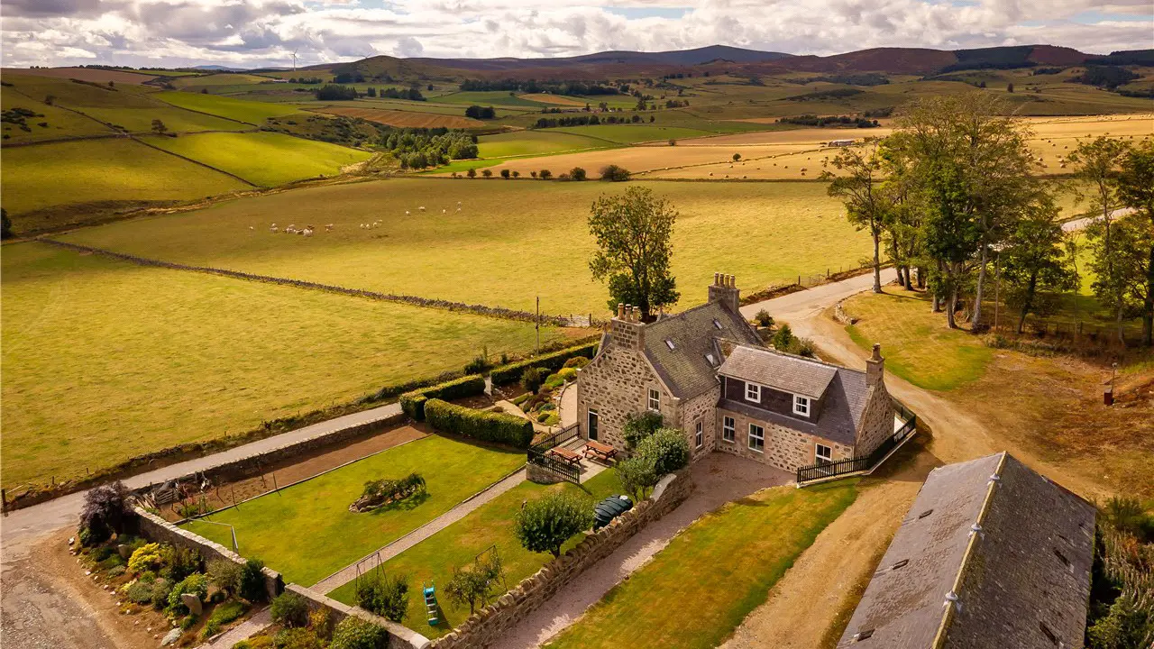 Newseat is an impressive and renovated traditional stone farmhouse located in the idyllic Scottish countryside in Rhynie, near Huntly in Aberdeenshire. With an elevated position and beautiful open views over the surrounding countryside, this is a superb property sitting in around 0.67 of an acre. Entering from the front vestibule, the main entrance hall is a wonderful entrance, with solid wood flooring and the original wood doors & finishings. To one side is the main sitting room with a dual aspect and a wood burning stove. To the other side is a generous double bedroom enjoying the views, and with ensuite shower room. There is an additional modern shower room accessed from the hall. Continuing through to the rear of the house, you will find the dining room / family room. This is a versatile room with a wood burning stove and is on semi open plan with the modern fitted kitchen. The kitchen is very well equipped, offers both storage and work top space and has a range cooker. There are various storage options on the ground floor and a rear vestibule leads outside. Stairs lead down to the lower ground floor cellar room which houses the boiler.Continue up the stairs from the main hall to the first-floor landing. To the front of the property are two equally spacious double bedroom with the most impressive views to the front. Both these bedrooms have ensuite shower room. There are two further double bedrooms with a side view and located to the rear is the main double bedroom with adjacent bathroom.ACCOMMODATIONGround Floor: Vestibule, entrance hall, sitting room, dining room/family room, kitchen, shower room & bedroom with ensuite shower room.First Floor: Two bedrooms with ensuite shower room. Three further double bedrooms. Bathroom.Lower Ground Floor: Cellar room.GARDEN GROUNDSThe garden grounds are beautifully tended by the present owner. To the front of the house is a planted area bound by a traditional stone wall & hedging with a path meandering through. To the east side is a grass lawn area and a raised patio area accessed from the sitting room. Behind the house there is a further grass lawn, and an additional sheltered patio area lies to the west side of the house.The stone chip driveway provides parking for several cars. Part of the traditional building to the rear is included in the sale. This is a large stable room & two store rooms.SERVICES, COUNCIL TAX AND ENERGY PERFORMANCE CERTIFICATE(S)Water PrivateElectricity MainsDrainage Septic TankTenure FreeholdHeating Oil CHCouncil Tax N/AEPC Band DThe property is fitted with solar panels.ACCESS/THIRD PARTY RIGHT OF ACCESSThe track/drive from the main road is a shared access due to a third party requiring very occasional access to the farm buildings behind Newseat Farmhouse. The main access route to the farm buildings by the third party is up the track/drive to the east side of the farmhouse.ADDITIONAL INFORMATION This property is currently registered and operated as a holiday let, rather than a full residential dwelling. As such, buyers should be aware that standard residential mortgage lending may be restricted or unavailable until a formal change of use is applied for and approved by the relevant local authority.SITUATIONRhynie is a quaint village some 9 miles south of Huntly in the county of Aberdeenshire. Located between Aberdeen to the east and Elgin to the west, Huntly is a historic town prospering during the 18th Century through the expanding linen industry. Today, amenities include primary and secondary schools, two major supermarkets, a good selection of independent shops, sporting and recreational facilities and a train station providing direct links to Aberdeen and Inverness. The small village of Rhynie has a local shop, church and primary school. Aberdeen (about 37 miles) provides all the facilities expected from a modern and prosperous city, with an excellent selection of shopping, retail parks and associated services, rail links and an airport (about 29 miles) providing regular domestic and international flights.Aberdeenshire is renowned as being one of the sunniest and driest counties in Scotland and it has a wide range of excellent places to stay, eat and shop. The county is famed for its breath-taking scenery, long sandy beaches and wildlife and offers wonderful leisure and recreational opportunities. Nearby, the rivers Bogie and Deveron offer superb fishing whilst the area also offers ample opportunities for a wide range of game sports and country pursuits. The Nordic Ski Centre in Huntly provides training for cross country skiing and The Lecht Ski Centre, Glenshee and Aviemore are within relatively easy reach. There are many golf courses accessible within a short drive and as a popular tourist area, local attractions include ‘The Whisky Trail’, ‘The Speyside Way’, Cairngorm National Park, together with many ancient monuments, castles, buildings, and villages of historical significance.