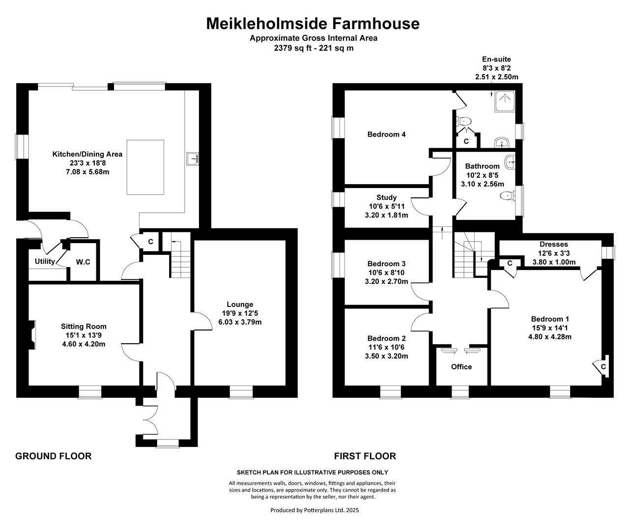 DESCRIPTION Meikleholmside Farmhouse presents an exciting opportunity to acquire a substantial rural property in a truly idyllic setting within the Annan Water Valley, just a short drive from the popular town of Moffat. The farmhouse offers generous and versatile accommodation with significant potential for further development, alongside expansive grounds and a range of traditional outbuildings.The accommodation comprises four bedrooms, including a principal bedroom with en-suite facilities and another with a walk-in cupboard. There are two additional office spaces, ideal for home working or study areas, a bright lounge, and a further sitting room featuring an open fire. The modern dining kitchen is the heart of the home, fitted with a central cooking island and sliding patio doors which open directly onto the courtyard. A utility room with w.c. completes the ground floor.While the kitchen has been updated to a high standard, the remainder of the property provides a blank canvas, offering buyers the opportunity to place their own stamp on this spacious farmhouse.Externally, the grounds extend to an expansive garden, providing ample outdoor space for family living, gardening, or further landscaping. The property also benefits from a range of outbuildings, formerly the original farm steading, which—subject to the necessary planning consents—offer excellent scope for conversion to workshops, additional accommodation, or business use.Services include a private septic tank and mains water supplySITUATION Meikleholmside Farmhouse is nestled within the beautiful Annan Water Valley, surrounded by rolling hills, woodlands, and open farmland. The setting is peaceful and unspoilt, with abundant wildlife and endless opportunities for enjoying the outdoors, whether it be walking, cycling, fishing, or horse riding.Despite its tranquil position, the property is only a short drive from the vibrant town of Moffat, well known for its welcoming community, independent shops, cafés, and local events. Moffat is recognised as Scotland’s first Dark Sky town and first Golden Eagle Town. And is well known as a “walkers’ town,” attracting outdoor enthusiasts while still offering everyday amenities and schooling.The location also benefits from excellent transport connections. The A701 provides a direct route north to Edinburgh, while the nearby M74 gives quick and easy access to Glasgow and Carlisle, making Meikleholmside an attractive choice for those seeking a rural lifestyle without compromising on accessibility.