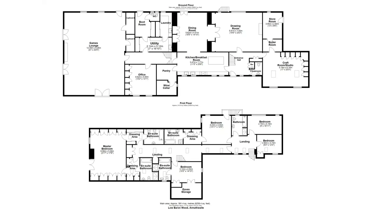 - Principal house (6,258 sq ft (581.4 sq m) with 3 reception rooms including a huge games room