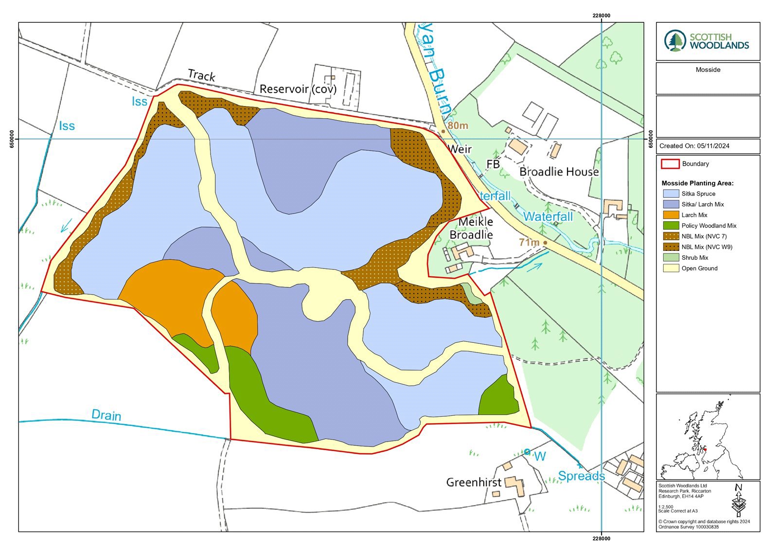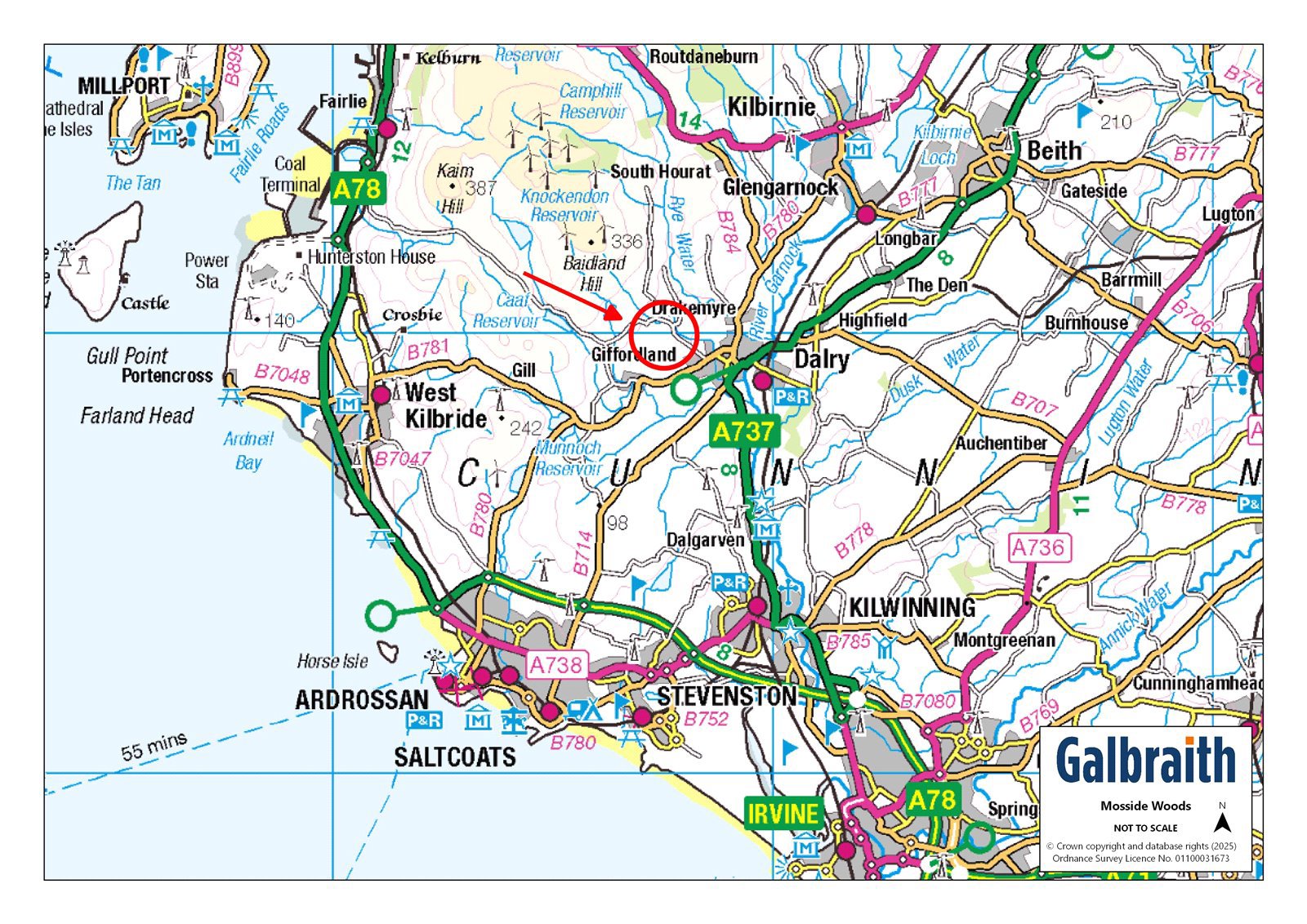 Mosside Wood is situated about 1 mile north west of Dalry, North Ayrshire and about 28 miles south west of Glasgow.Mosside Wood is a productive woodland extending to about 20.75 Ha (51.27 acres). The woodland was established in 2005. The plantation comprises Sitka Spruce, Larch, mixed broadleaves and open ground. The woodland is well stocked, comprising of Sitka Spruce from seed based improved stock, specifically chosen for stem straightness, superior volume/diameter per tree and an increase in wood density. The plantation can be accessed off the Fairlie Moor Road, Dalry and the woodland is on the west of this public road.According to the Macaulay Land Use Research Institute, the underlying land at Mosside falls within Category 4.2 in terms of agricultural production. The land sits between 81.8 metres and 98.0 metres above sea level.Further details are available from the selling agents.Mosside Wood is offered for sale as a whole.HISTORIC SCOTLANDNo parts of the property are subject to any historical or scheduled monuments.ACCESSConditional Planning Permission has been granted to provide gated vehicular access into the woodland from the public road.DIRECTIONSFrom Glasgow, take the M8 towards Glasgow Airport, at Junction 28a take the A737 towards Irvine. Continue through Beith and on to Dalry. At Hillend roundabout, turn right onto Kilwinning Road and turn left onto Vennel Street, then turn left joining the B780 (Kilbirnie/West Kilbride/Adrossan). After the cemetery turn right onto Wingfaulds Avenue, proceed along this road onto the Fairlie Moor Road for about 0.59 miles and Mosside woodland is then on the left.KA24 5HPWHAT3WORDSTo find this property location to within 3 metres, download and use What3Words and enter the following 3 words: duty.packets.disbelief